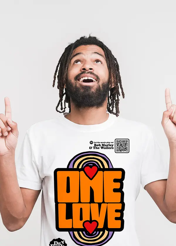Celebre sua música favorita e a propague para o mundo. Estampa sustentável, tintas biodegradáveis. Não utiliza água, zero emissão de dióxido de carbono. Camiseta em malha penteada fio 30.1. 100% algodão. Costura reforçada com acabamento em viés ombro a ombro. Gola em ribana.